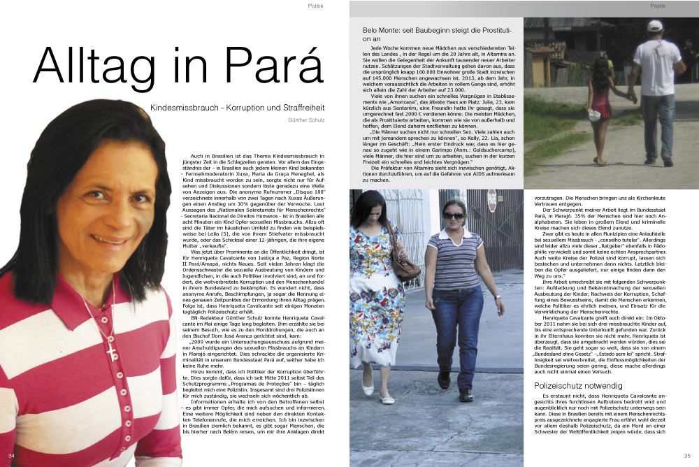 „2009 wurde ein Untersuchungsausschuss aufgrund meiner Anschuldigungen des sexuellen Missbrauchs an Kindern in Marajó eingerichtet. Dies schreckte die organisierte Kriminalität in unserem Bundesstaat Pará auf, seither habe ich keine Ruhe mehr.