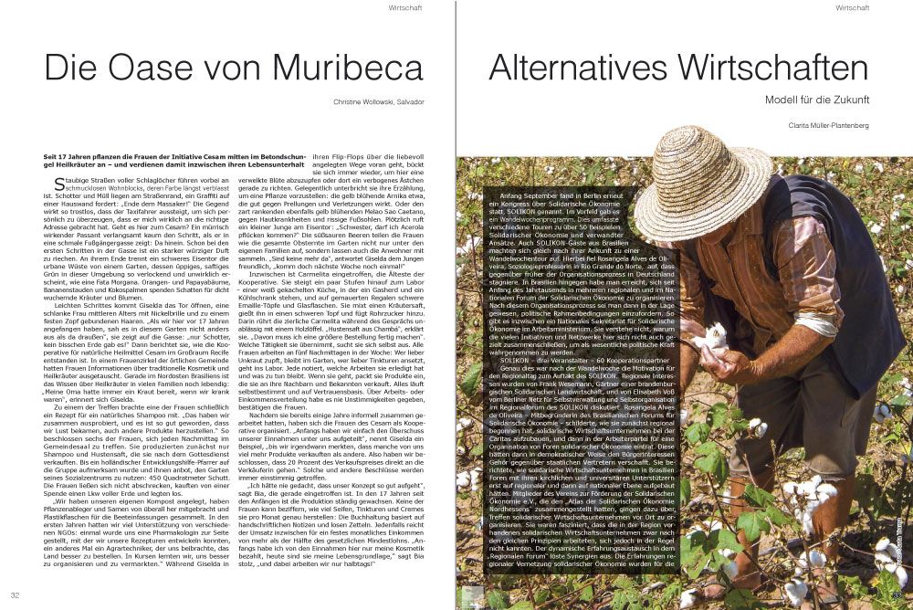 Anfang September fand in Berlin erneut ein Kongress über Solidarische Ökonomie statt, SOLIKON genannt. Im Vorfeld gab es ein Wandelwochenprogramm. Dies umfasste verschiedene Touren zu über 50 Beispielen Solidarischer Ökonomie und verwandter Ansätze. Auch SOLIKON-Gäste aus Brasilien machten sich gleich nach ihrer Ankunft zu einer Wandelwochentour auf. Hierbei fiel Rosangela Alves de Oliveira, Soziologieprofessorin in Rio Grande do Norte, auf, dass gegenüber früher der Organisationsprozess in Deutschland stagniere.