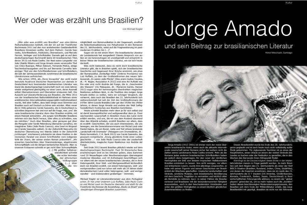 Jorge Amado (1912-2001) ist immer noch der meist übersetzte brasilianische Autor, wenn auch die aktuelle internationale Leserschaft seiner Romane sicher bei weitem nicht die Zahlen seines Landsmanns Paulo Coelho erreicht. Mehr als die Romane jedes anderen brasilianischen Schriftstellers haben sie jedoch dazu beigetragen, für den Leser der nördlichen Hemisphäre ein Bild von diesem tropischen Halbkontinent Brasilien entstehen zu lassen. Von nicht wenigen, vor allem von kritischeren Lesern, wurde ihm allerdings vorgeworfen, er habe mit seinen Figuren und seinen Geschichten ein Brasilienbild der Klischees geschaffen: tropische Landschaften und Strände, sinnliche Mulatas, eine brasilianische Bevölkerung mit dem Geschick, Tragödien zu vermeiden und letztlich alles als Komödie zu nehmen, kurz: in seiner Fiktion die Brasilianerinnen und Brasilianer mit der bewundernswerten Fähigkeit auszustatten, noch in den bescheidensten Umständen und unter den größten Widrigkeiten zu einem letztlich glücklichen Zusammenleben zu finden.