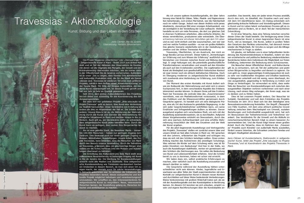 Rio ist eine geteilte Stadt, die Bewohner Marés – immerhin 140.000 Menschen – haben nur geringen Zugang zum Zentrum. Dies bedeutet auch nur einen geringen Zugang zu Museen, Bibliotheken, Ausstellungen. Unsere Arbeit, das Projekt Travessias, kann bewirken, dass die Menschen von Maré durch den Besuch unserer Ausstellung, durch die Teilnahme an Travessias, erkennen, dass sie gleichwertige Bürger sind, sodass sie die Scheu verlieren Orte wie Museen und Ausstellungen überhaupt zu betreten.