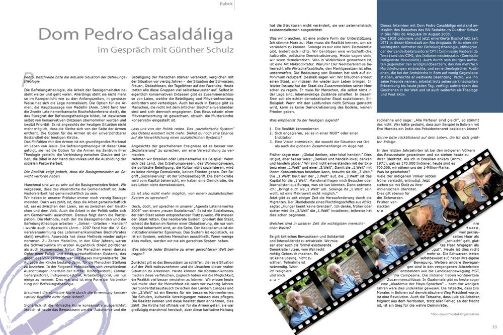 Dieses Interview mit Dom Pedro Casaldáliga entstand anlässlich des Besuches des BN-Redakteurs Günther Schulz in São Félix do Araguaia im August 2008.