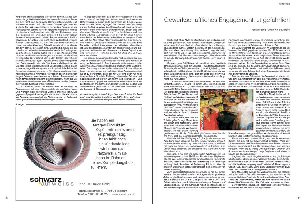 Ein ganz guter Job? Die Arbeitsverhältnisse im brasilianischen Einzelhandel sind ein Skandal – hunderttausendfache Skandale, die so üblich, so anhaltend, so alltäglich sind, dass sich nicht einmal Betroffene wie die 35-jährige Meire klarmachen, wie skandalös sie sind. Erst am Ende des Interviews ändert sie ihre Meinung: „Nein, das ist mies bezahlt, das langt nicht mal fürs Leben.“