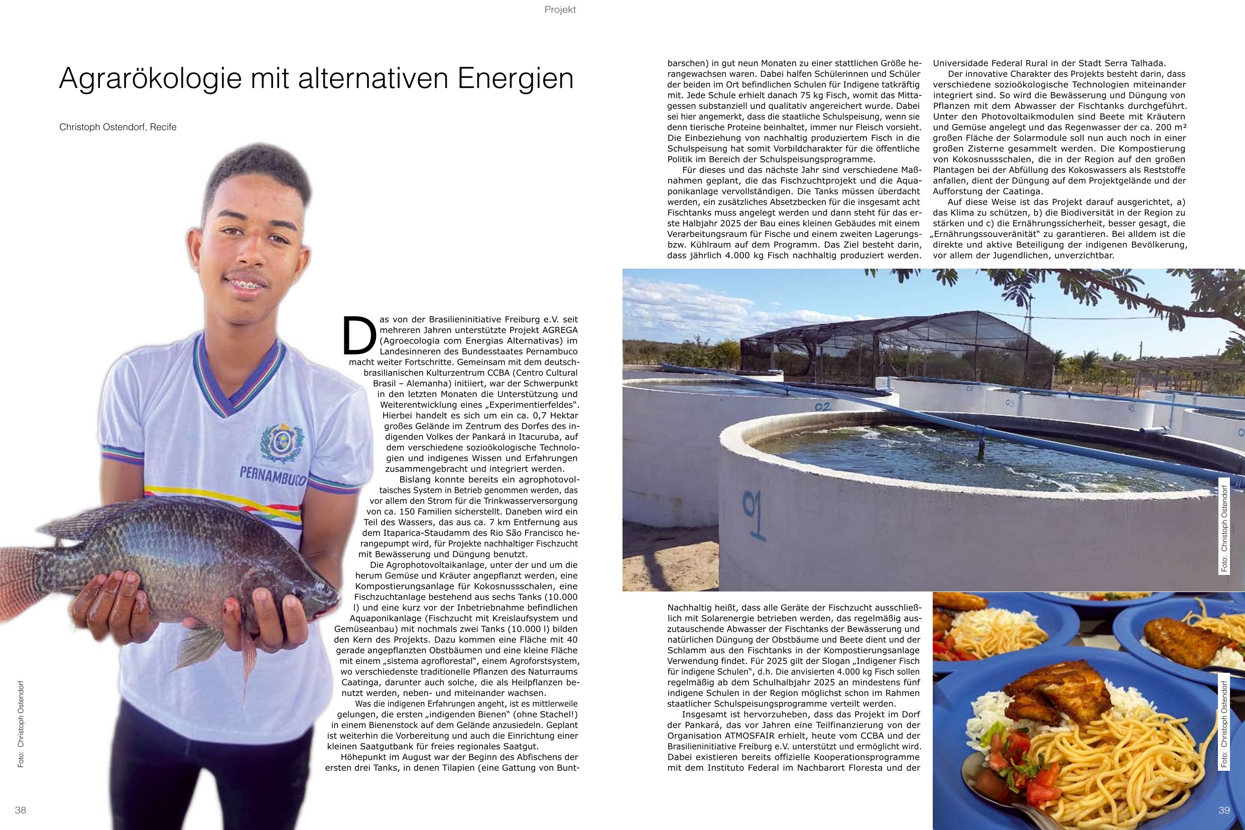 Wie wir in den vorhergehenden Ausgaben der BN berichteten, begann 2018 ein agroökologisches Projekt namens AGREGA (Agroecologia com Energias Alternativas) im Bundesstaat Pernambuco, das die Brasilieninitiative Freiburg e.V. gemeinsam mit ihrem brasilianischen Partner Centro Cultural Brasil Alemanha (CCBA) durchführt. Bei dem mit Mitteln vom Bundesministerium für wirtschaftliche Zusammenarbeit und Entwicklung (BMZ) geförderten Projekt geht es darum, Kleinbauernfamilien eine Perspektive für die Zukunft zu eröffnen. Auf diese Weise soll sich ihre Lebenswirklichkeit verbessern. Zusammen mit den beteiligten Familien fanden 2018 zwei Workshops in Recife statt, um dieses Vorhaben im Detail zu planen. Seit 2019 ging es dann in die Implementierungsphase. Die Projektförderung des Projekts durch das BMZ endete Ende Februar 2020. Unser brasilianischer Partner und wir begleiten es aber weiterhin.