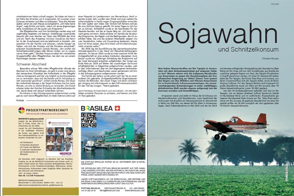 Was haben Wasserstraßen am Rio Tapajós in Amazonien mit dem Schweineschnitzel auf unserem Teller zu tun? Warum setzen sich die indigenen Munduruku aus Amazonien so gegen die Staudammpläne der brasilianischen Regierung zur Wehr? Dieser Text spannt den Bogen von den Wäldern und Flüssen Amazoniens bis in Deutschlands Schweinemastanlagen, die zusammenhängenden Entwicklungen in einer vielfältigen, globalisierten Welt werden ebenso aufgezeigt wie die enormen sozialen und Umweltfolgen.